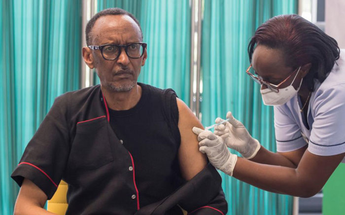 President Paul Kagame of Rwanda being vaccinated.